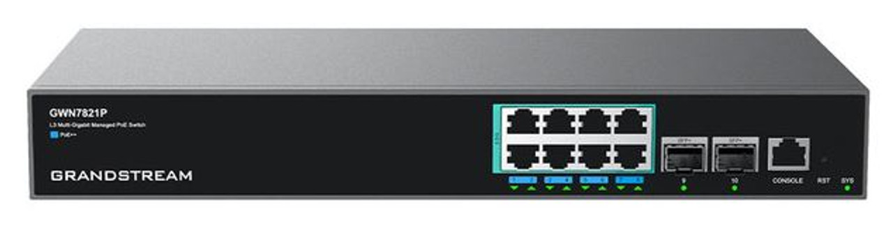 - GWN7821P: 8x 2.5 Gigabit ports, 2 SFP+ ports